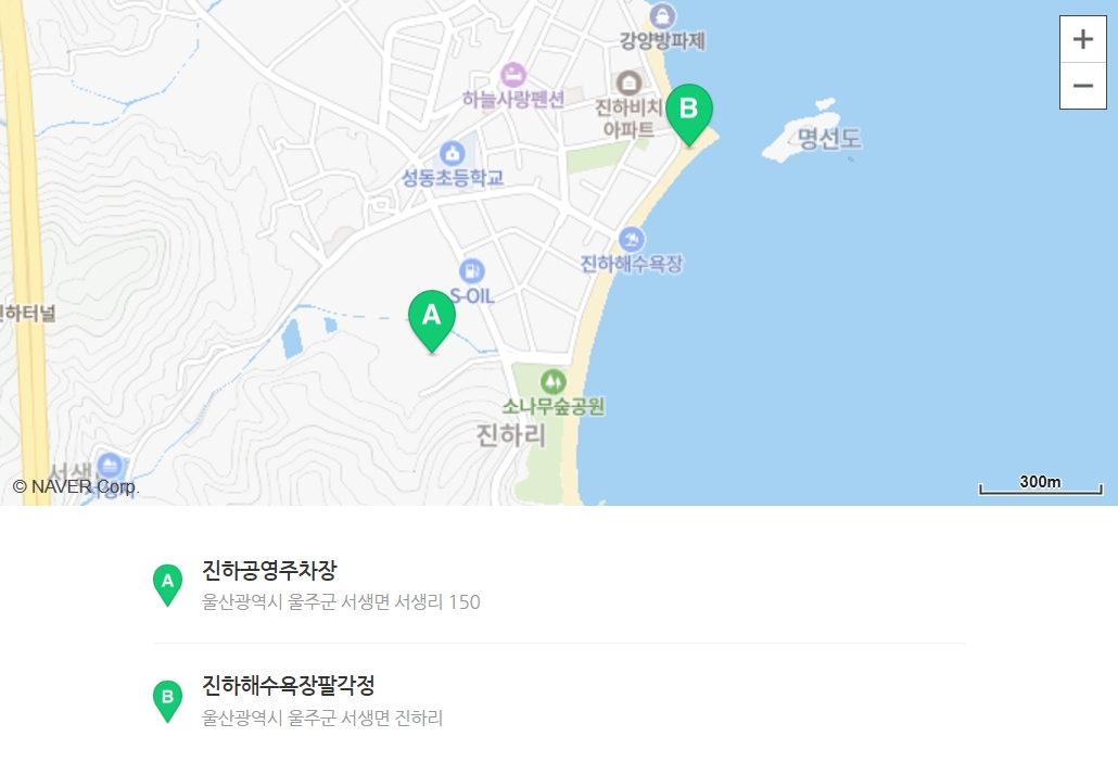 - 진하공영주차장이나 진하 해수욕장 부근 해안가 도로변에 주차할 수 있습니다.
